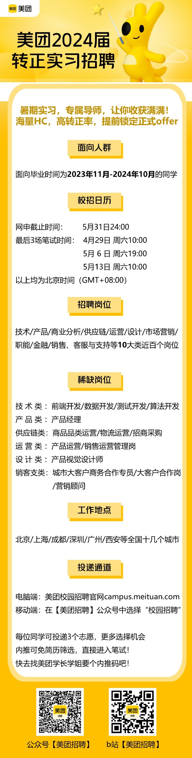 美团24届转正实习校招信息